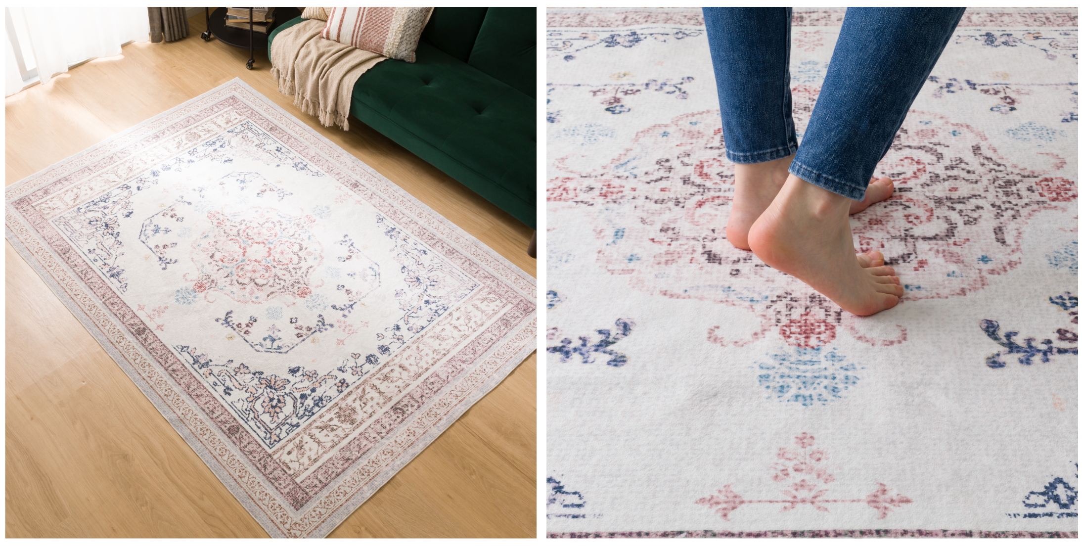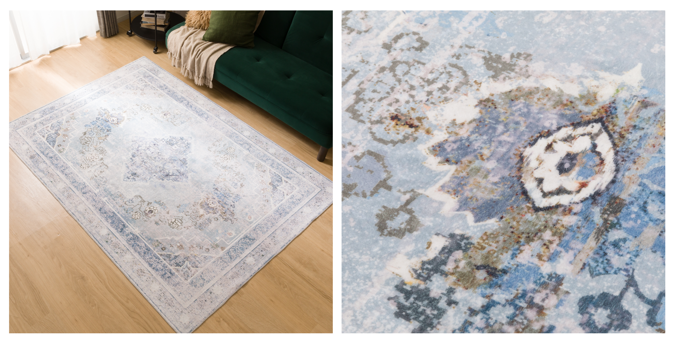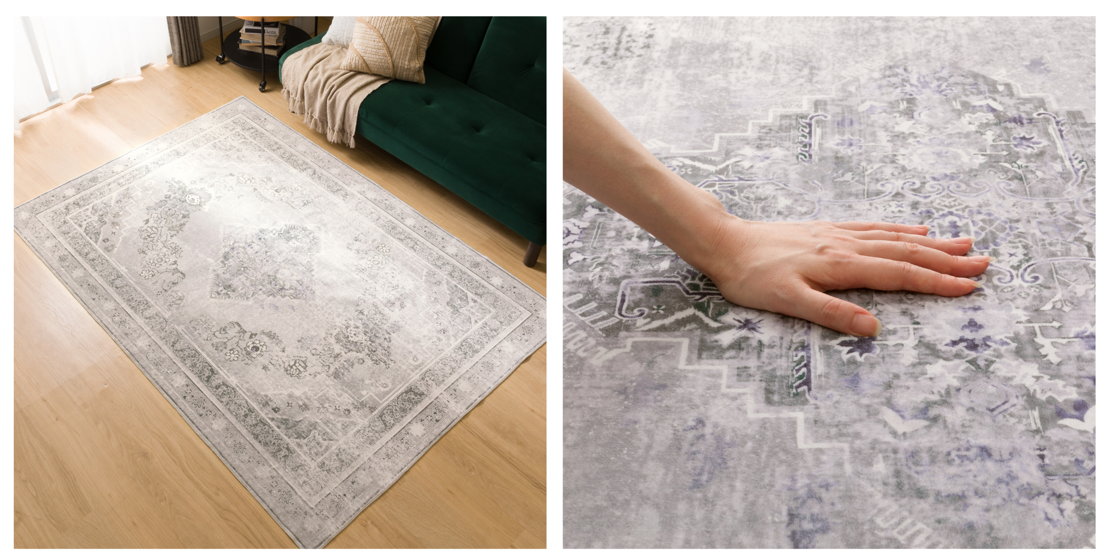 おしゃれなラグとして人気のウィルトンラグは、複雑で繊細なデザインが特長。一方で、製法上洗えるものが少なく、重さがあるので敷くのが大変です。