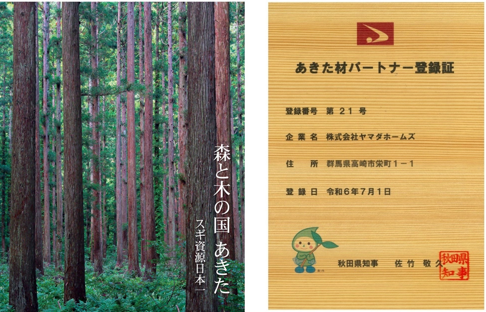 株式会社ヤマダホームズ(本社:群馬県高崎市、代表取締役兼社長執行役員:清村浩一、以下、ヤ マダホームズ)は、秋田県が実施している秋田県産木材の利用促進と販路強化へ向けた取り組み「あきた材パートナー」へ登録しました。ヤマダホームズではSDGs達成に向けた取り組みとして、地球資源の保護と生産・品質管理を掲げており、2050 カーボンニュートラルの実現等に貢献する取り組みとして国産木材の利用を推進してまいります。