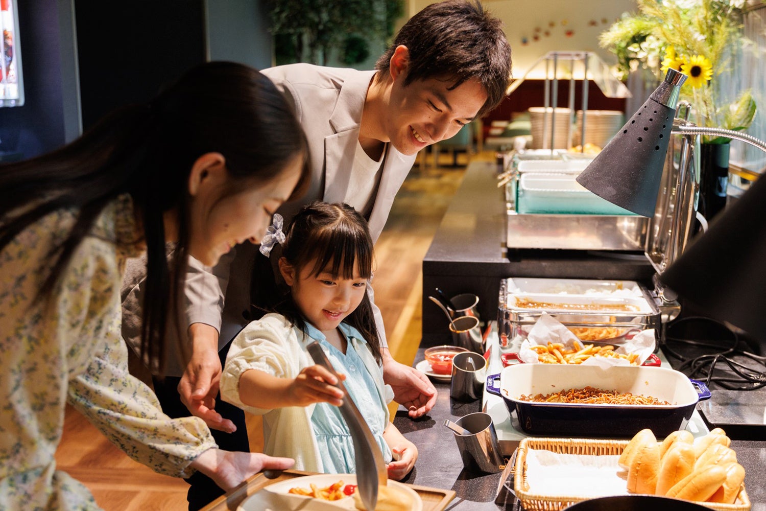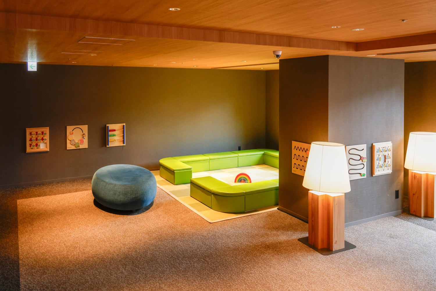 ホテル内のプレイスペースには「Gakkenニューブロック」を新たに設置し、親子で一緒に遊べるスペースを充実 させました。広々としたプレイスペースで、お子さまが自由に創造力を発揮しながら遊ぶことができる環境を整え、親御さまには安心してお子さまを見守りながらリラックスしていただける空間をご提供いたします。