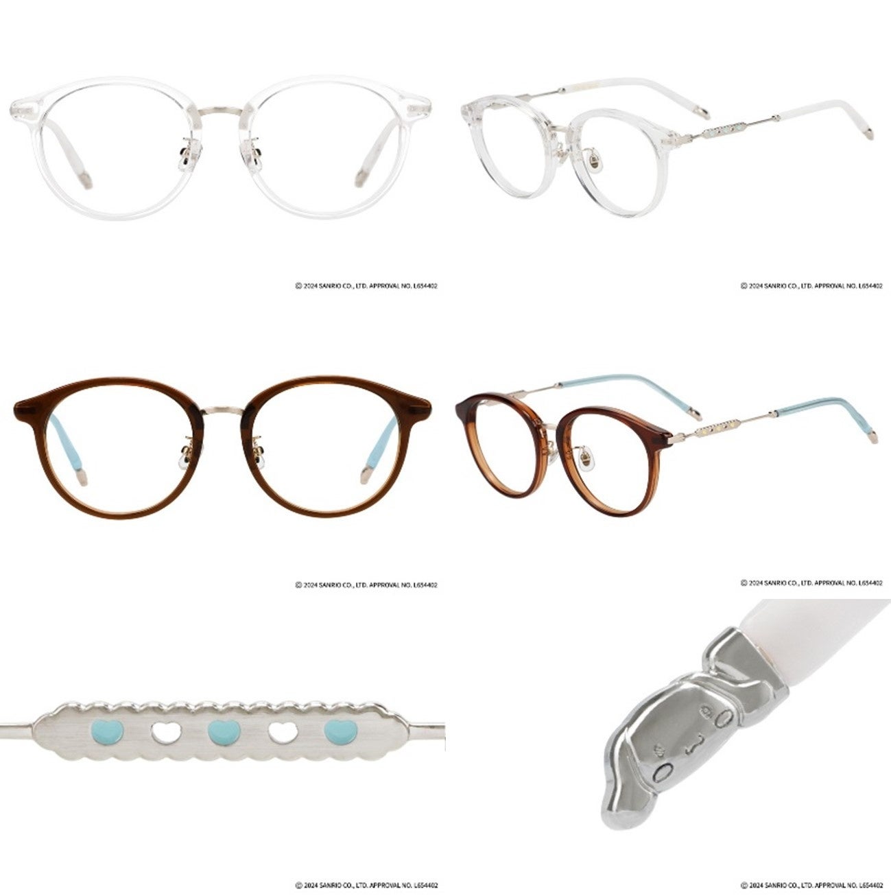 シナモロールが生まれたふわふわの雲や、大好物のシナモンロールをあしらった特別モデル。目元は耳の形をイメージしており、シナモロールの愛らしさがぎゅっと詰まったフレームです。