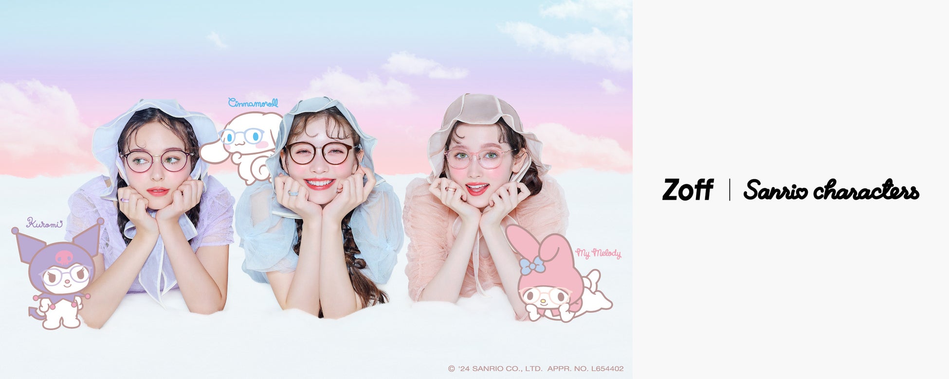 「Zoff|サンリオキャラクターズ」の全ラインアップを公開クロミ、シナモロール、マイメロディの3キャラクターがキュートなメガネ姿で登場