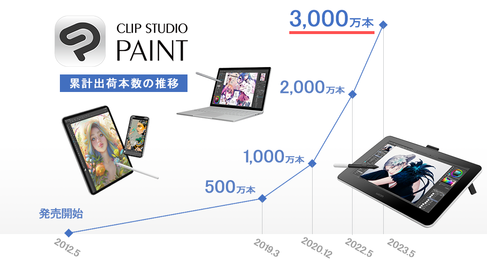イラスト・マンガ・Webtoon・アニメーション制作アプリ「CLIP STUDIO PAINT」の全世界における累計出荷本数が3,000万本に