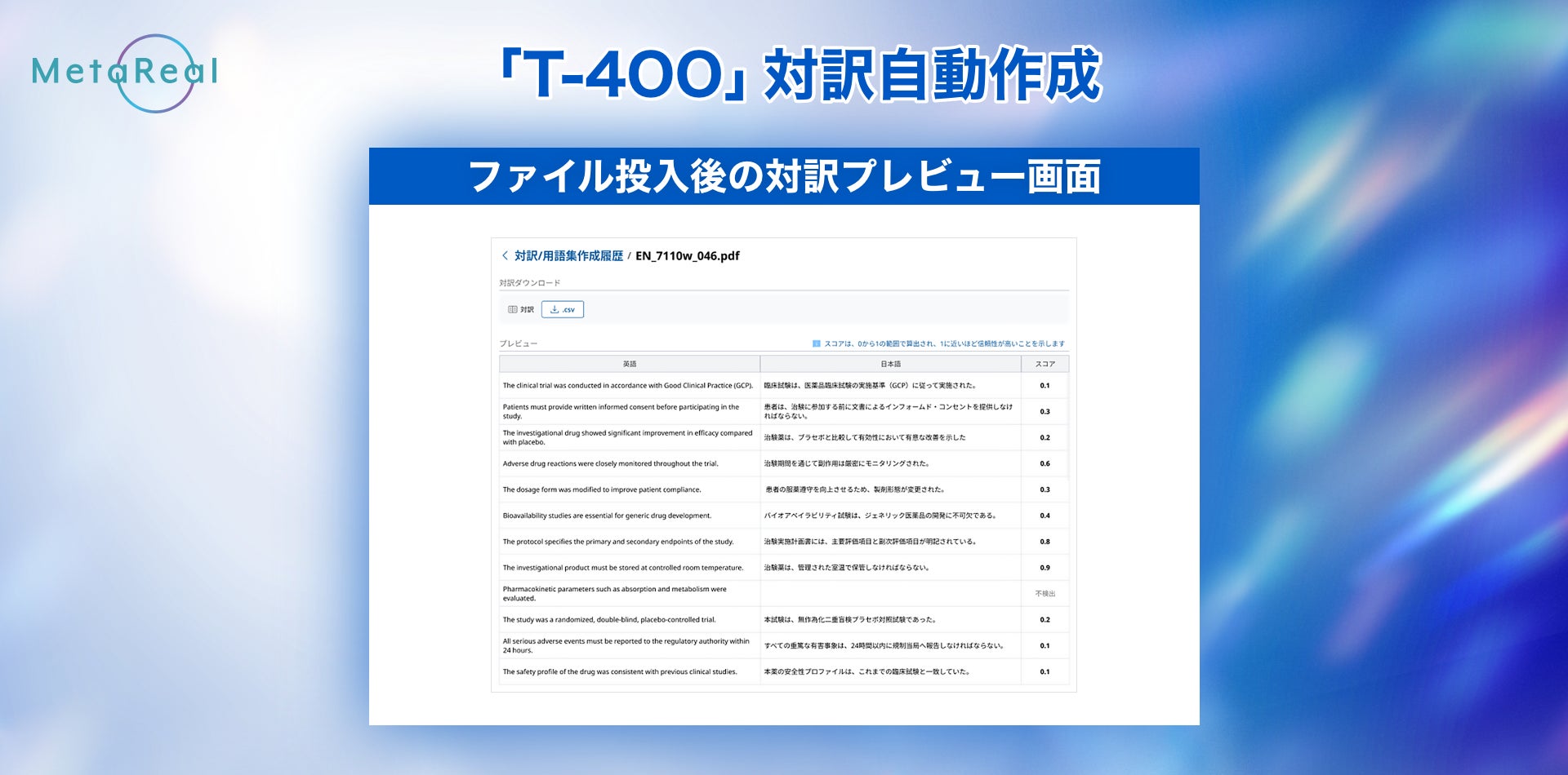 株式会社メタリアルグループで、国内市場No.1※のAI翻訳サービスを開発・提供する株式会社ロゼッタ(代表取締役:五石 順一)は、2025年12月、高精度AI翻訳「T-4OO(ティーフォーオーオー)」に、新機能「対訳自動作成」と「用語集自動作成」をリリースしたことをお知らせいたします。