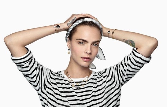 ヴィクトワール・ドゥ・カステラーヌの大胆なインスピレーションは、「ローズ デ ヴァン」コレクションに、アイコニックな作品を紡ぎ続けています。ダイヤモンドとメダイヨンがあしらわれたネックレスが新たに3モデル登場し、オパール、マザーオブパール、オニキスがあしらわれたイエローゴールドやピンクゴールドのバングルやリング、ホワイトやピンクゴールドにダイヤモンドが輝きを添えるコンテンポラリーな2つのオープンリングが加わりました。さらに、ネックレス、2連ブレスレット、イヤリングからなる「ローズ セレスト」コレクションが、ムッシュ ディオールが大切にしていたスター モチーフへのオマージュを捧げます。ファイン ジュエリーのミューズであるカーラ・デルヴィーニュがご紹介する「ローズ デ ヴァン」新作の魅力はこちらの動画からご覧ください。