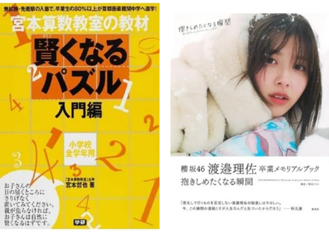 通販ランキングの注目は、第2位の『宮本算数教室の教材 賢くなるパズル 小学校全学年用 入門編』と第5位の『櫻坂46 渡邉理佐 卒業メモリアルブック 抱きしめたくなる瞬間 【丸善ジュンク堂書店・honto限定特典付き】』です。『宮本算数教室の教材 賢くなるパズル』は、テレビ番組に宮本哲也さんが出演されたことで需要が一気に高まったようです。第5位『櫻坂46 渡邉理佐 卒業メモリアルブック』はhontoでの購入者特典としてポストカードが付いています。