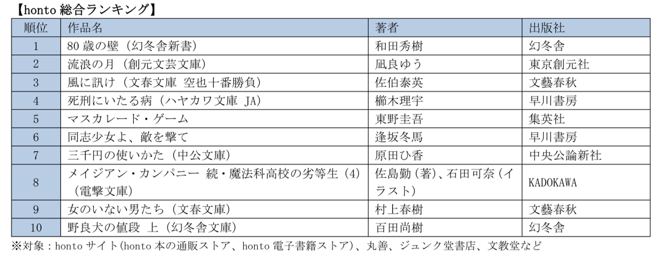 2022年5月ランキングについてハイブリッド型総合書店honto広報担当が解説