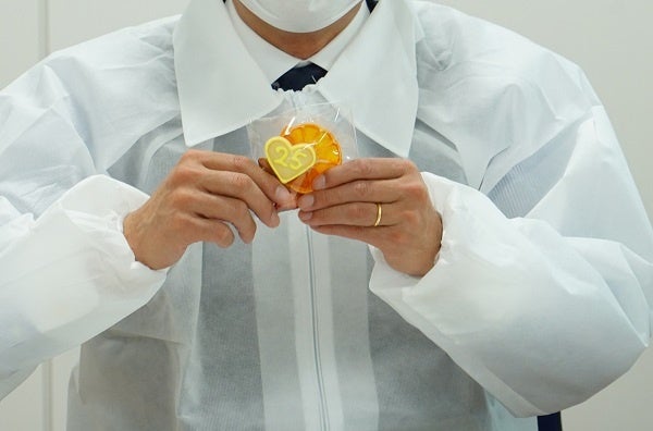 この度、中山さんはパーソルサンクス「よこはま夢工房」従業員がレクチャーする、バレンタインデーチョコづくり企画にて、結婚25周年を迎える奥さまへプレゼントするチョコづくりに挑戦していただきました。さらに、チョコレートづくり企画ご参加後には、「よこはま夢工房 長者町」におけるマドレーヌ作りの工程を見学いただきました。