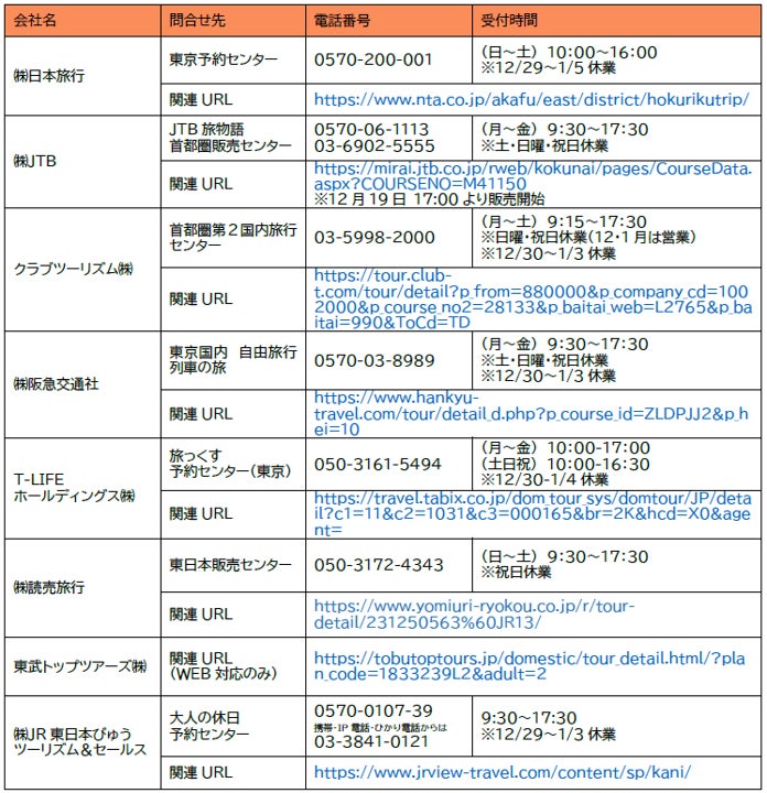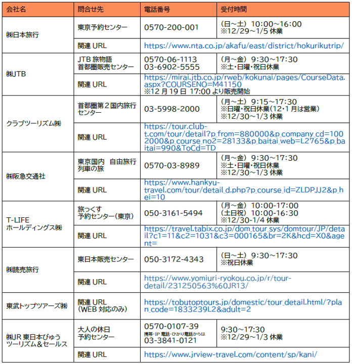 (株)JR東日本びゅうツーリズム&セールス https://www.jrview-travel.com/content/sp/kani/