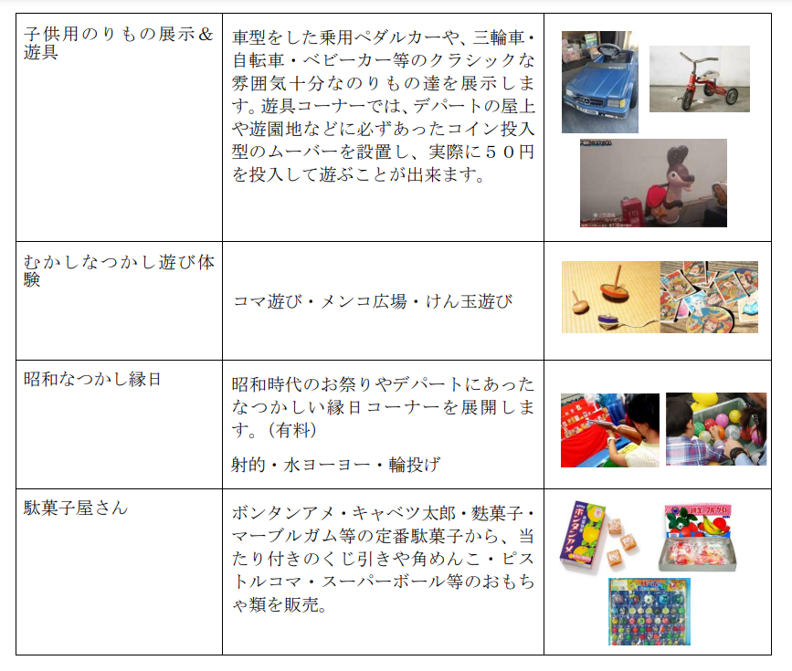 また、期間中館内ではレトロ展に合わせ、「せいせき懐かしの昭和あれこれクイズラリー」を実施します。館内5カ所に設置されたパネルにあるクイズに回答し、全問正解した各日先着200名様に、駄菓子や昔ながらのおもちゃセットをプレゼントします。