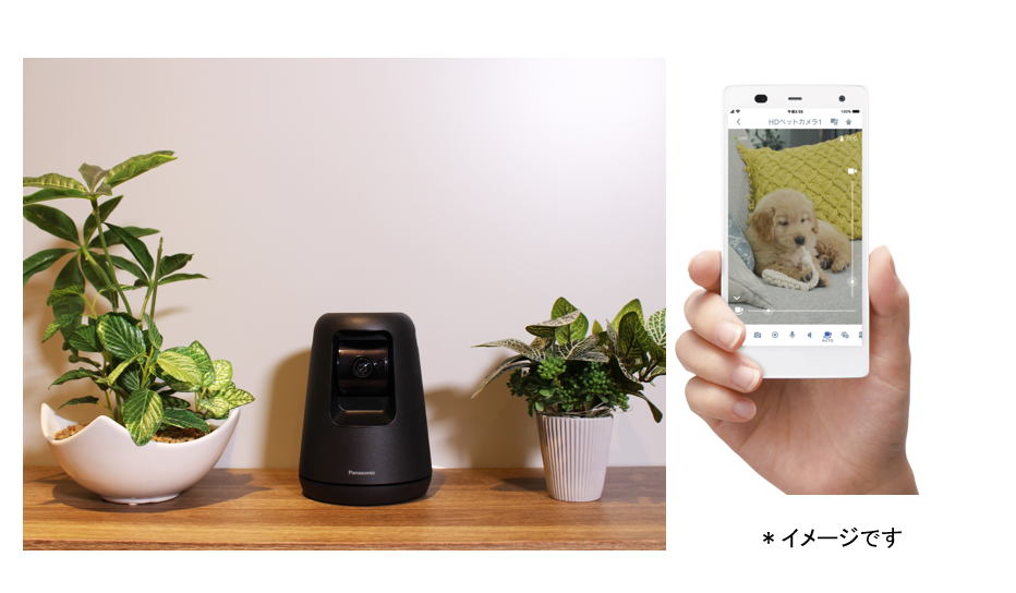 外出先からもスマートフォンでペットの様子や室温が確認できる