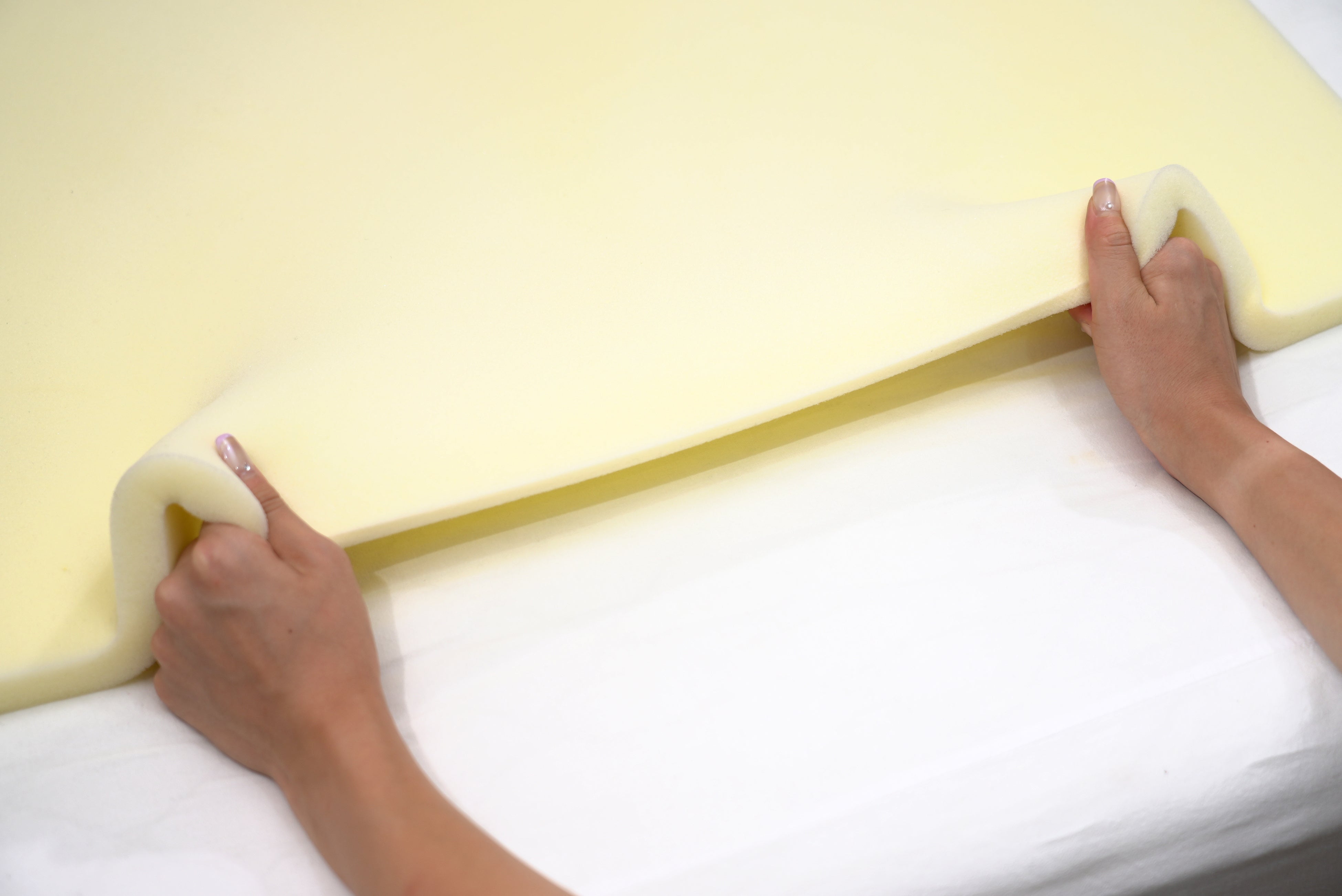 ソフトタッチの感触を保ちつつ、サポート力、耐久性をアップするために、汎用フォームの約2倍の密度を実現しました。長く使ってもへたりにくいです。