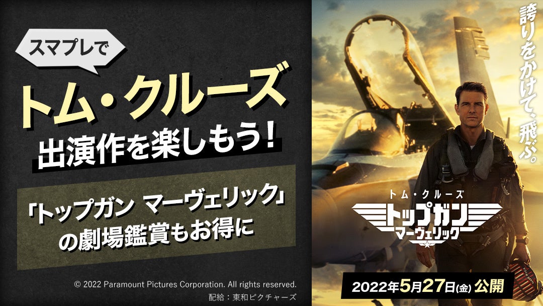 「auスマートパスプレミアム」は、エンタメ体験やショッピング割引など、 「おトク」な生活を提供する全てのスマホに対応した月額サービス。この度、トム・クルーズの出世作となった「トップガン」の36年ぶりの続編、「トップガン マーヴェリック」の公開を記念し、トム・クルーズ出演映画特集を2022年5月27日(金)から公開します。特集では、最新作「トップガン マーヴェリック」と前作「トップガン」をはじめ、「ミッション:インポッシブル」シリーズ、「コラテラル」「バニラ・スカイ」を取り上げて紹介します。auスマートパスプレミアム会員は、トム・クルーズ出演の10作品以上を見放題で楽しめます。