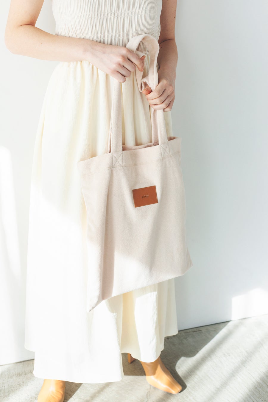柔らかな風合いのパイル地で仕立てたトートバッグ。
