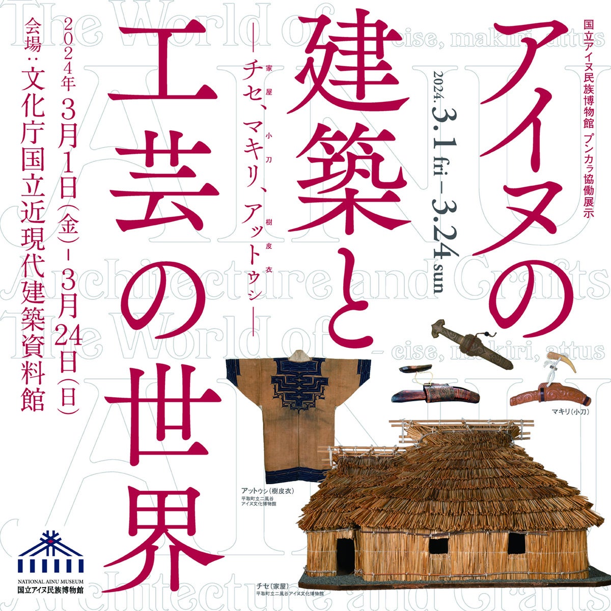 文化庁国立近現代建築資料館で開催中の令和5年度プンカㇻ協働展示「アイヌの建築と工芸の世界- チセ、マキリ、アットゥㇱ -」では、下記日程でトークイベントを開催します。