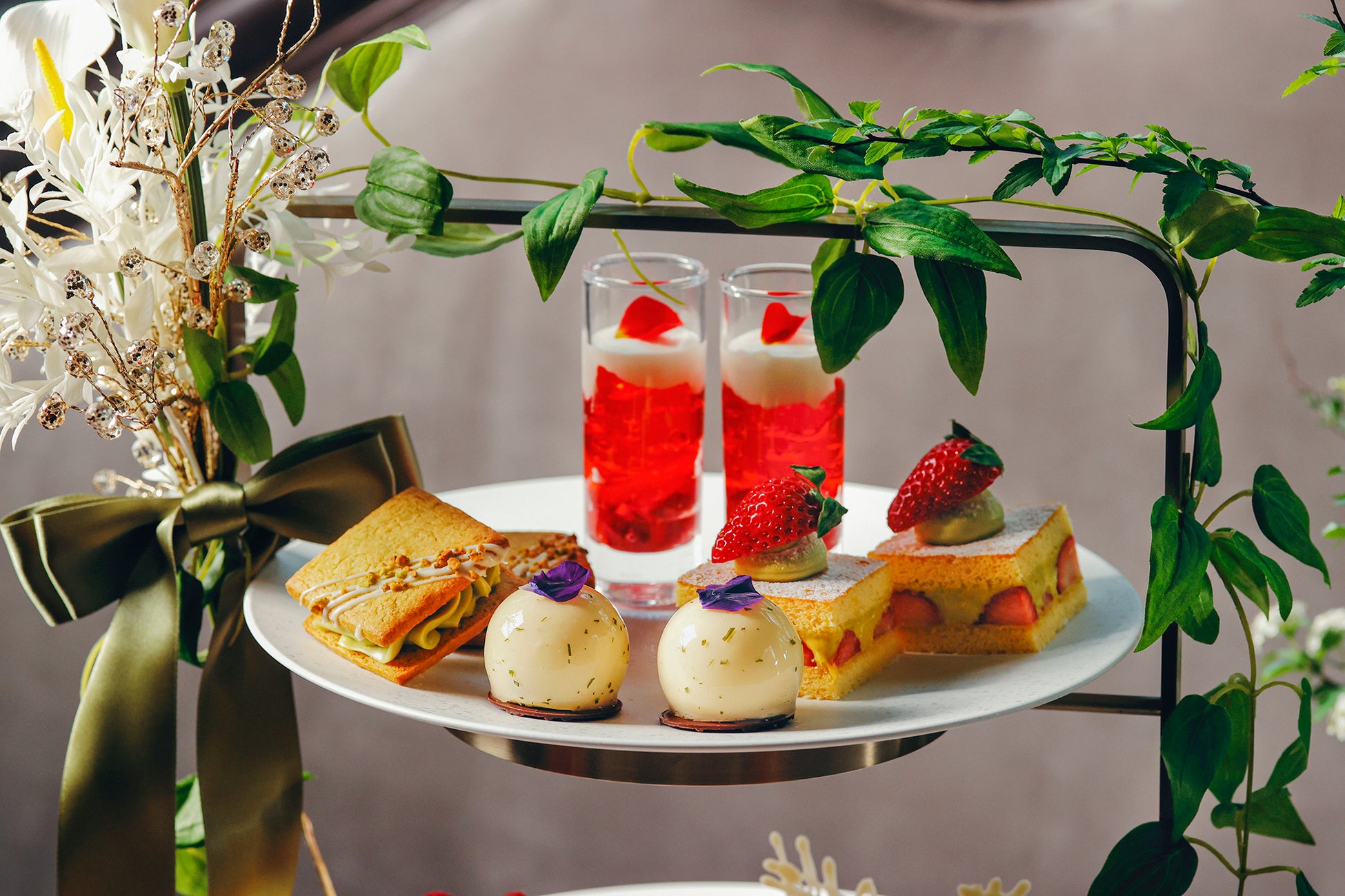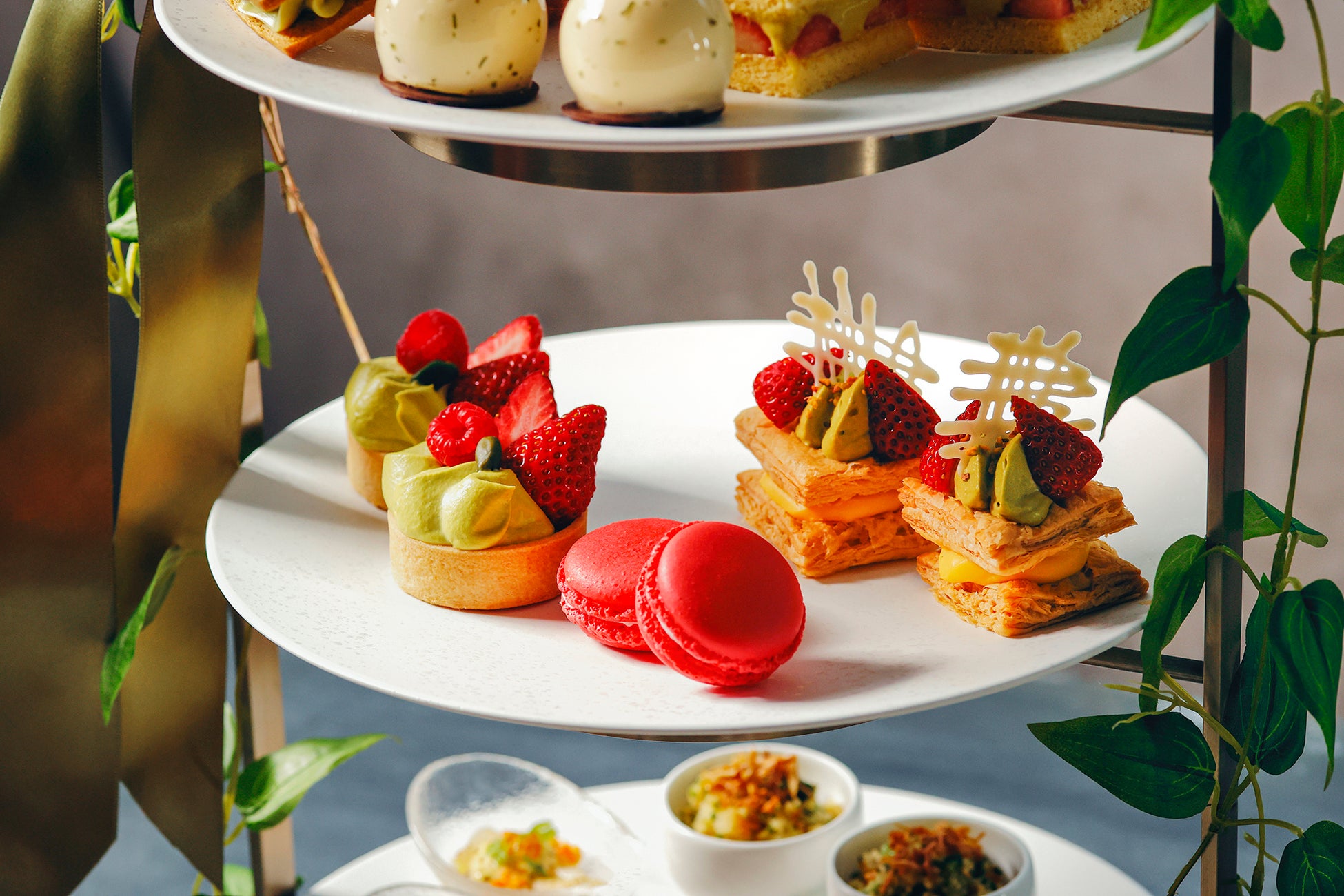“バジル”の爽やかな風味をアクセントに加えた新スイーツ誕生!『ストロベリー&ピスタチオ アフタヌーンティー』 新登場