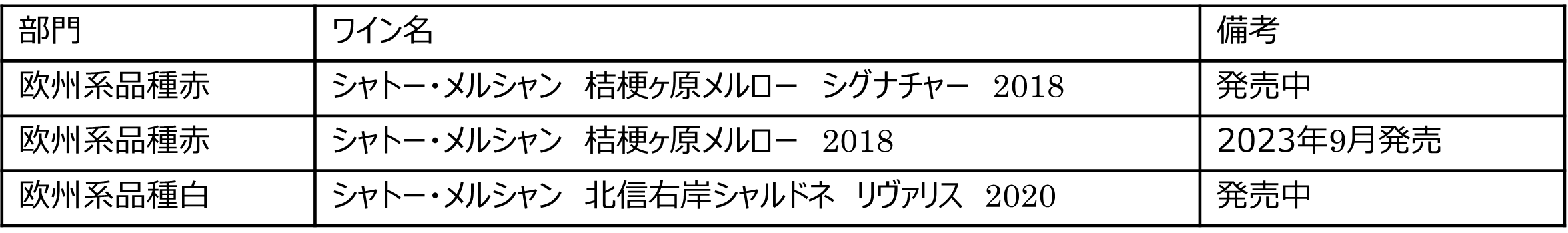 「Japan Wine Competition (日本ワインコンクール) 2023」にて「シャトー・メルシャン 桔梗ヶ原メルロー シグナチャー 2018」など計3品が金賞を受賞