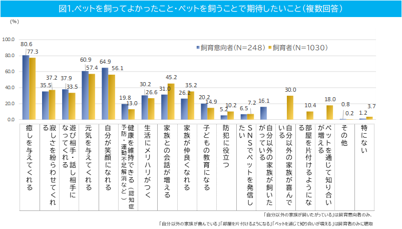- ペットは自分に癒し・笑顔・元気を与えてくれる存在。家族が仲良くなるといった想定以上の効果も