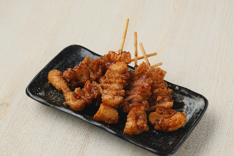 パリパリに揚げた鶏皮を特製の甘だれとスパイスで仕上げました。
