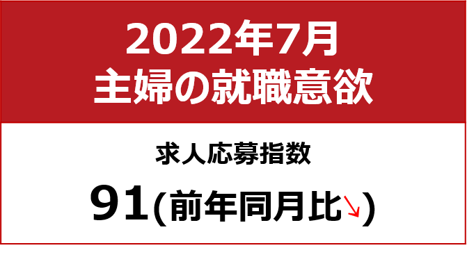 【主婦の就職意欲調査 2022年7月】主婦求人の応募指数91(前年同月比-7)