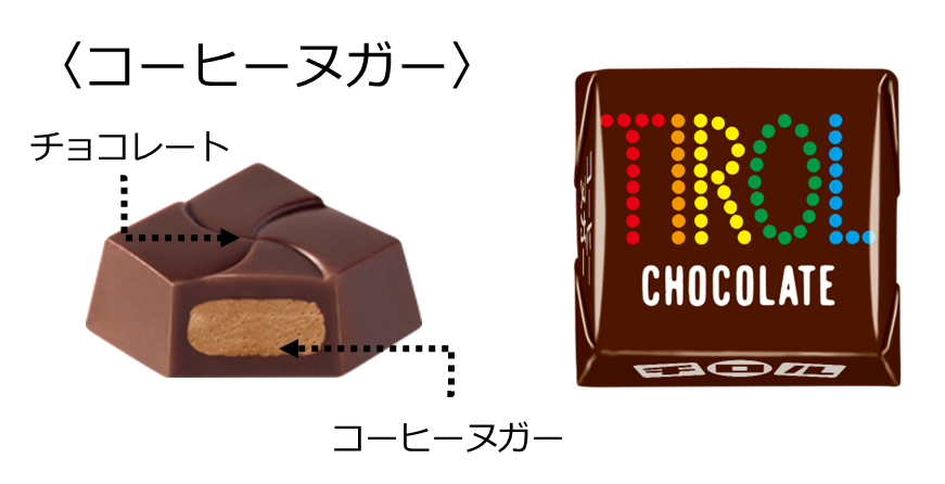 1979年に登場!ほんのりビターなコーヒーヌガーとチョコレートの甘さの絶妙なバランスがクセになります。根強い人気の定番チロルチョコです。