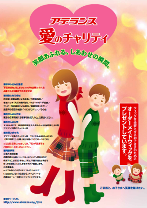 「お子さまの髪の悩みを心の傷にしないために」をテーマに、病気やケガなどの理由でウィッグを必要とされるお子さま(4歳から15歳まで)へウィッグをプレゼントする「愛のチャリティ」を、1978年から40年以上継続して実施しています。元々はクリスマスの期間に行われていたキャンペーンでしたが、2012年より通年に変更しました。また、2014年3月からはすぐにウィッグが必要なお子さまのために、オーダーメイド・ウィッグだけではなく、レディメイド・ウィッグのプレゼントも開始しました。