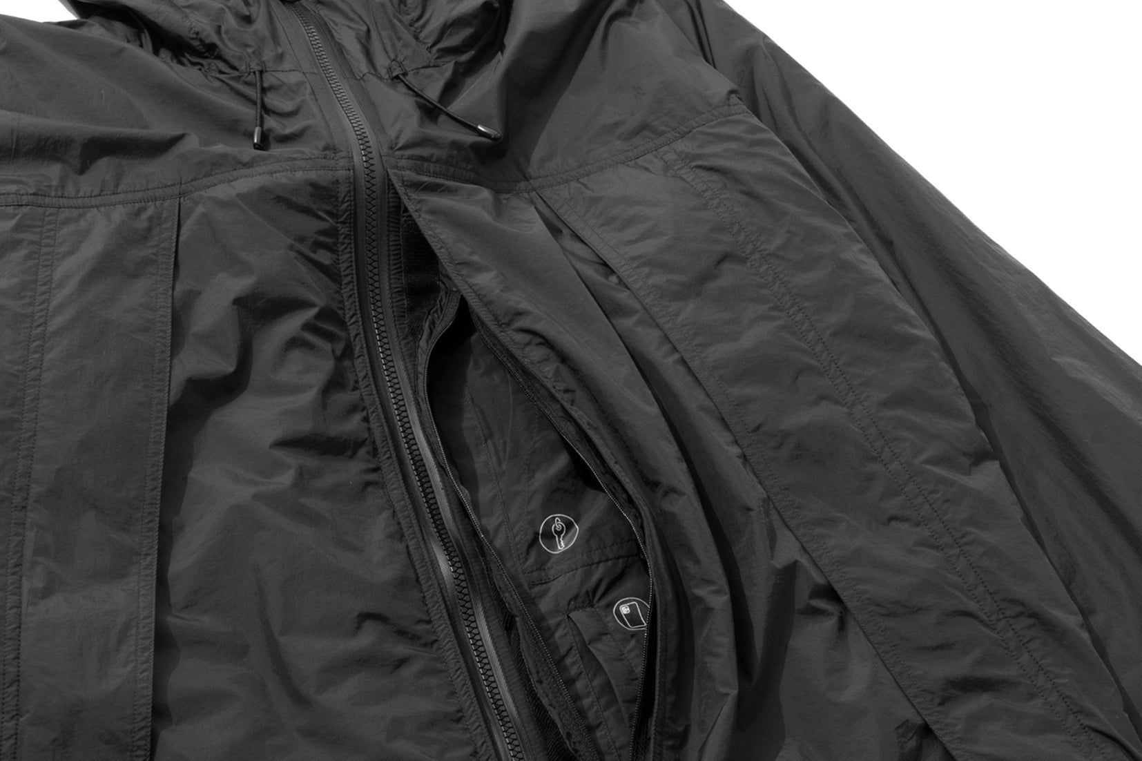 ライトジャケットはシーズンテーマ〈定番の進化〉に基づき、“着るバッグ”仕様を一部変更。従来は内側に配置しているアイコン付き機能ポケットを、メインファスナーの両脇に移動させ、前を閉めたままでもアクセスできるように改良しました。