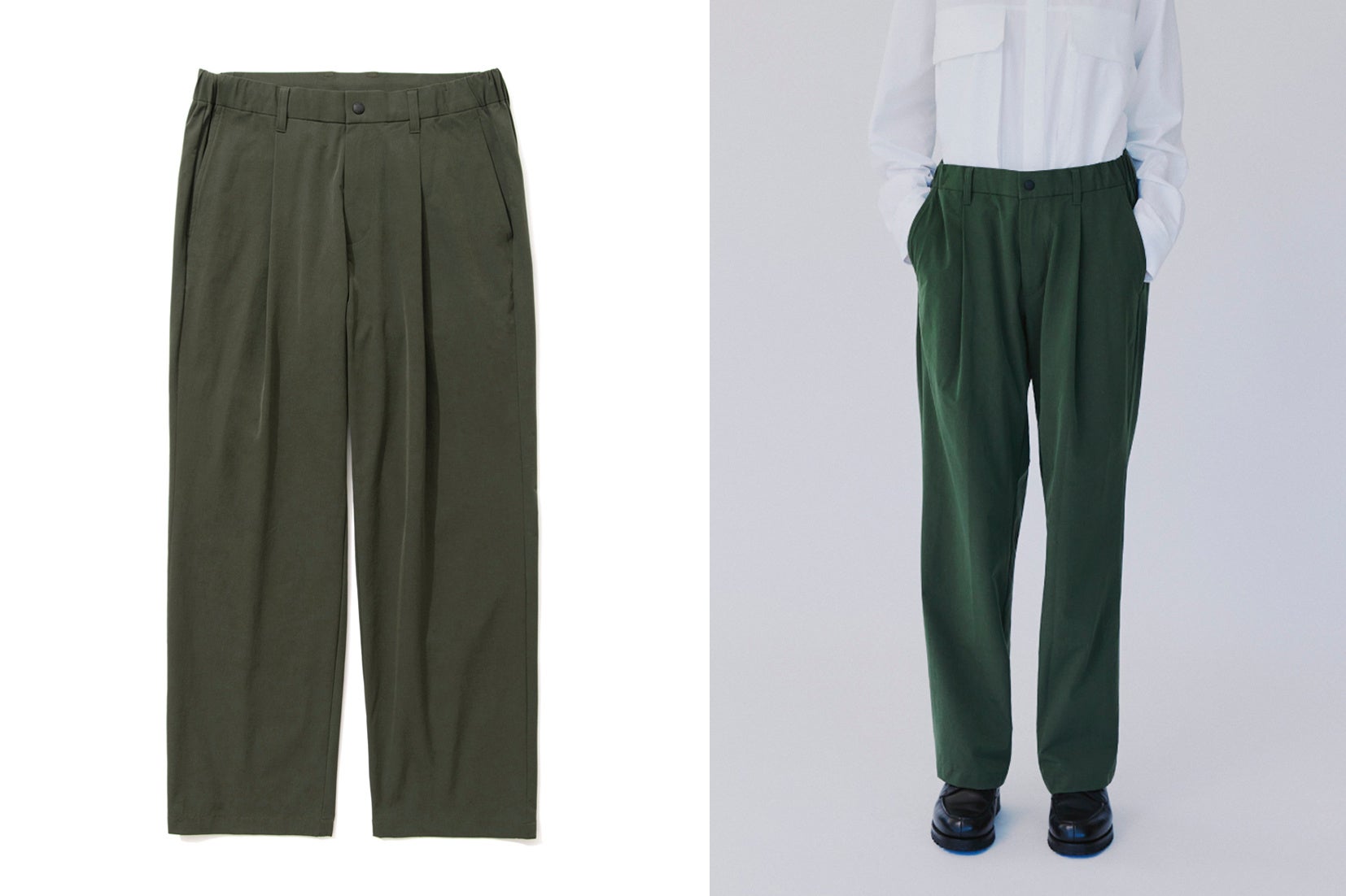 セットアップで着用できるパンツは、ワイドとテーパードの2タイプから選べます。