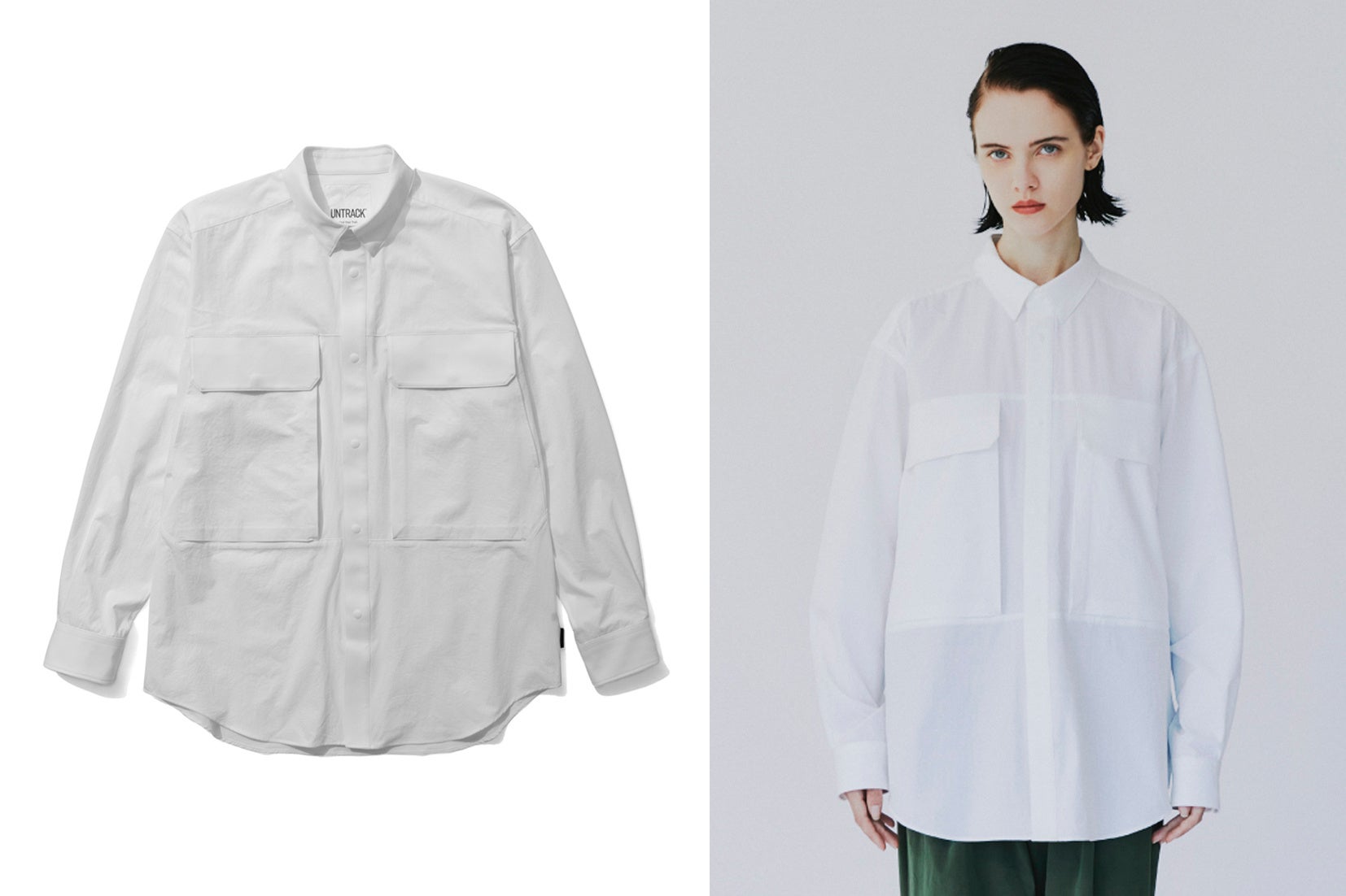 「UNTRACK」では、一部トップスに、財布やパスポート、スマートフォン、鍵、イヤホンといった身の回り品を収納できる“着るバッグ”仕様の機能ポケットを採用しました。バッグを持たずとも十分な収納力を備え、手ぶらで快適に外出できるアイテムを提案します。