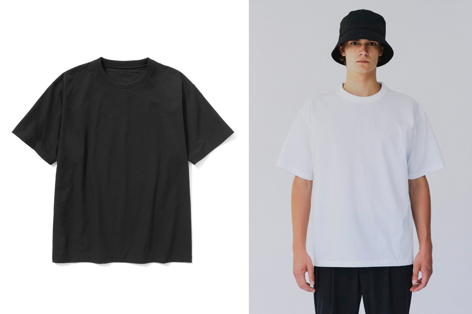 テックTシャツは袖口にフラットシーマ縫製を採用し、肌当たりの良さを追求。身幅にゆとりを持たせたリラックスシルエットながら、シャツイン時のバランスも計算されており、ジャケットのインナーとしても上品に着こなせます。