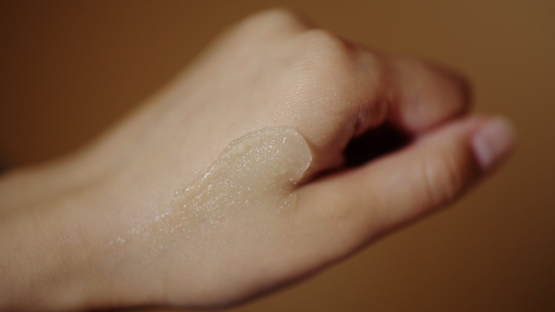のびの良いバームが手のひらですぐにとろけオイルに変わります。