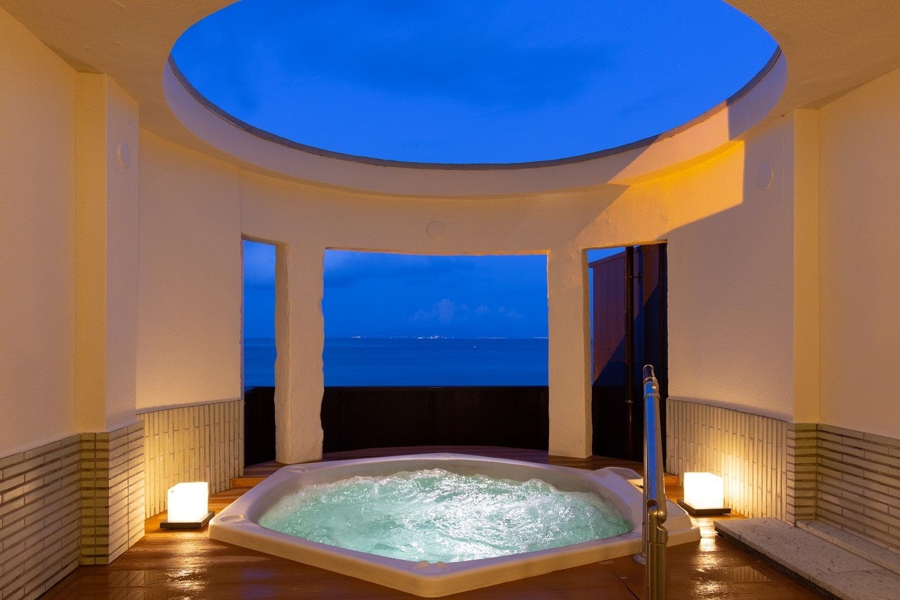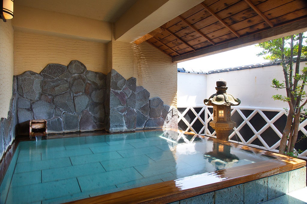 豊富な湯量(毎分300ℓ)を誇る、2本の自家源泉かけ流しの湯は、温泉大浴場や露天風呂、開放的なジェットバスと半露天の岩造りの2種、計4ヶ所の貸切風呂(2022年5月リニューアル)などでご堪能いただけます。