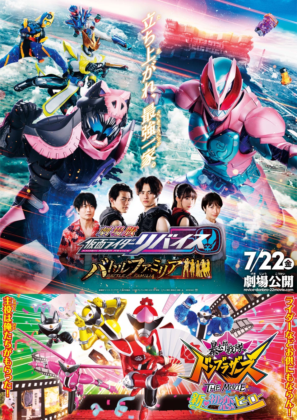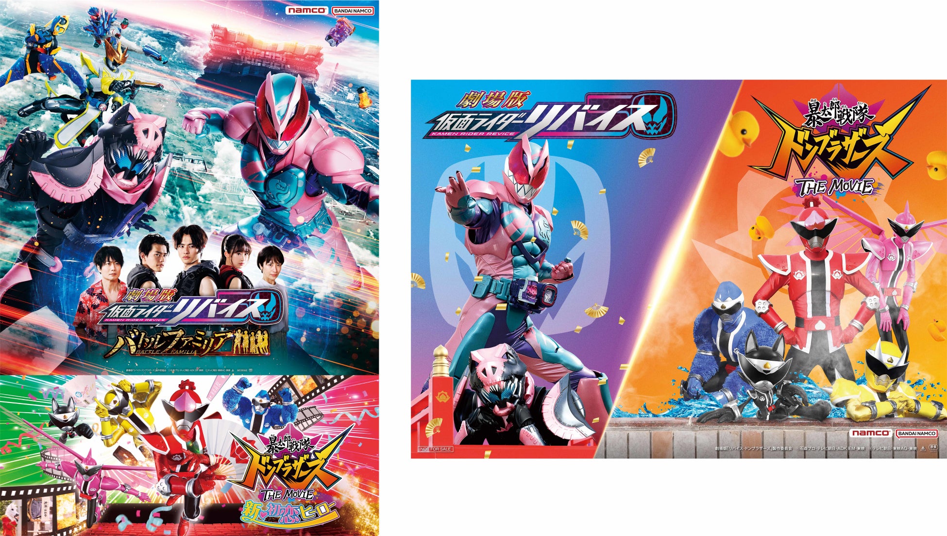 株式会社バンダイナムコアミューズメントは、『劇場版 仮面ライダーリバイス バトルファミリア』『暴太郎戦隊ドンブラザーズ THE MOVIE 新・初恋ヒーロー』の公開を記念して、ナムコ限定グッズがもらえるキャンペーンを、2022年7月22日(金)から全国約80店舗のアミューズメント施設「namco」で開催します。