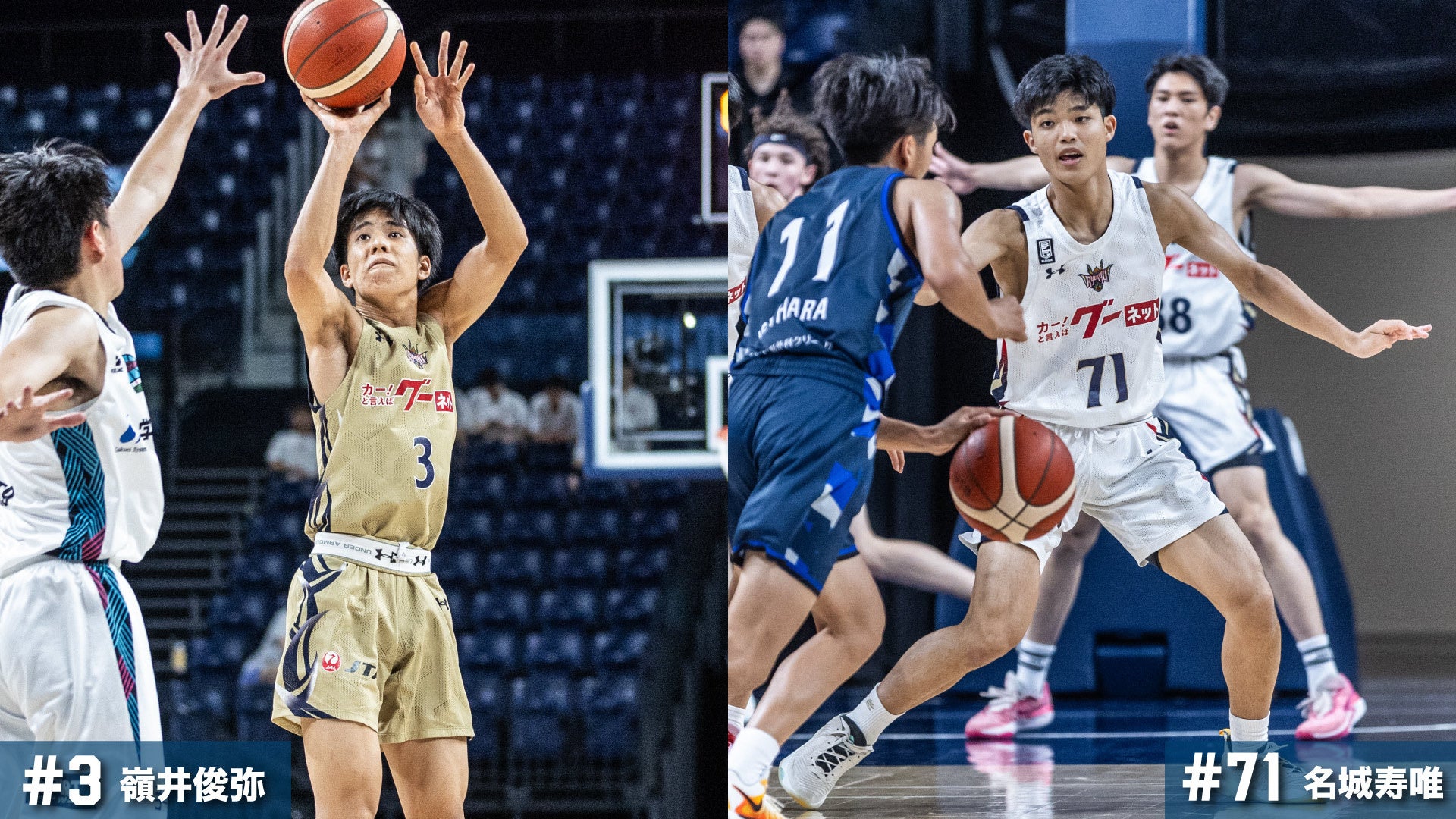 収穫と課題がある中、#3 嶺井俊弥選手、#33 長嶺充来選手、#71 名城寿唯選手の2年生3人の成長は目を引きました。#33 長嶺選手はチームの中でもトップクラスのディフェンス力を武器に度々スティールを決め、オフェンス力が持ち味の#3 嶺井選手はディフェンスでも存在感を発揮。#71 名城選手は鹿児島U18戦で4本の3Pシュートを沈める活躍を見せました。