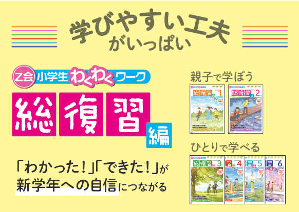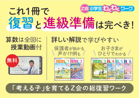 『Z会小学生わくわくワーク 総復習編』を使って今年の学習範囲をしっかりマスターして、万全な状態で次の学年に進級しましょう!