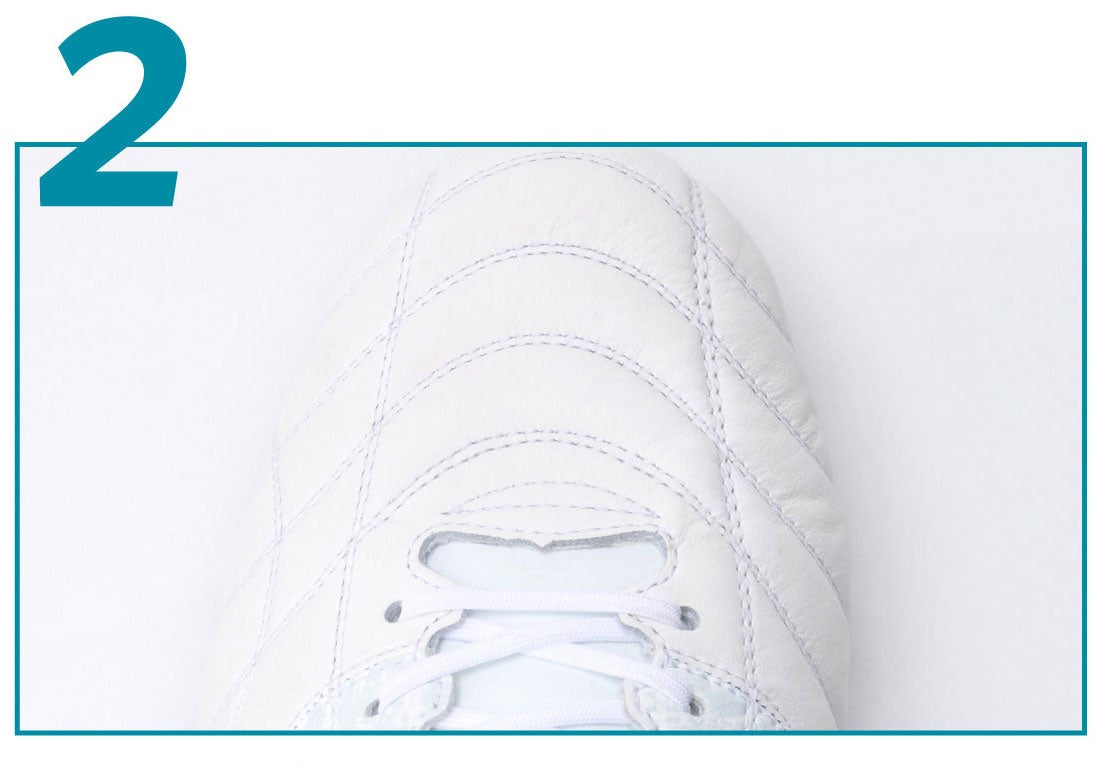 前足部に足なじみの良いカンガルーレザーを、中足部から踵にかけて、しなやかなマイクロファイバーを採用し、足に吸いつくようなフィット感と繊細なボールタッチを実現。