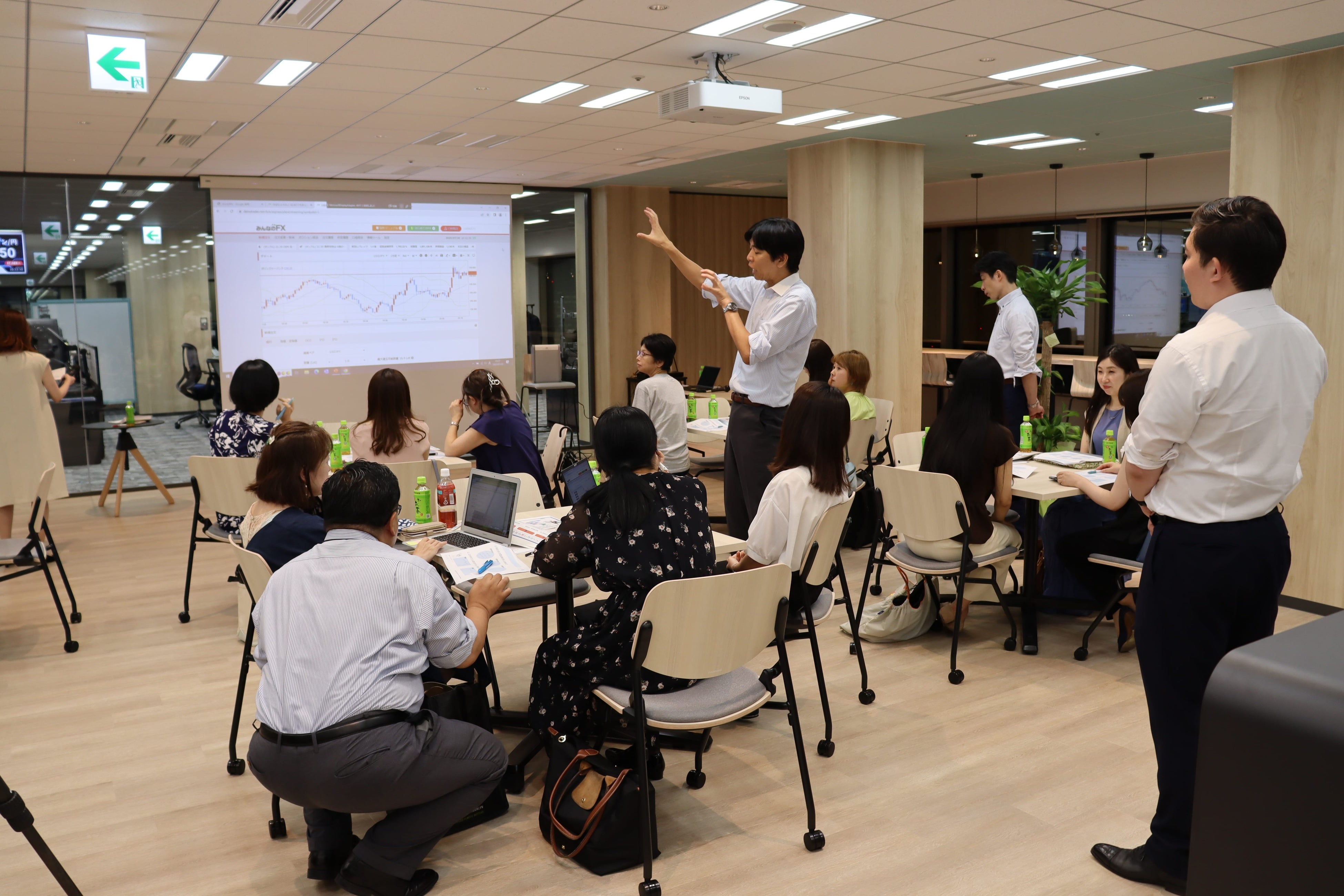 新オフィスのセミナースペース「金融を、もっと面白くする」エリアでFX取引(外国為替証拠金取引)との新しい出会い!実際にポジションを持ったら皆さんのスイッチが入りました!