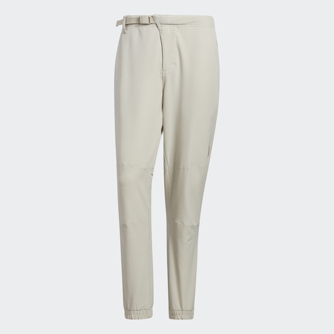 ストレッチ性に優れたジョガーパンツ。ウェストはベルト無しでも着用可能なバックル仕様のデザイン。