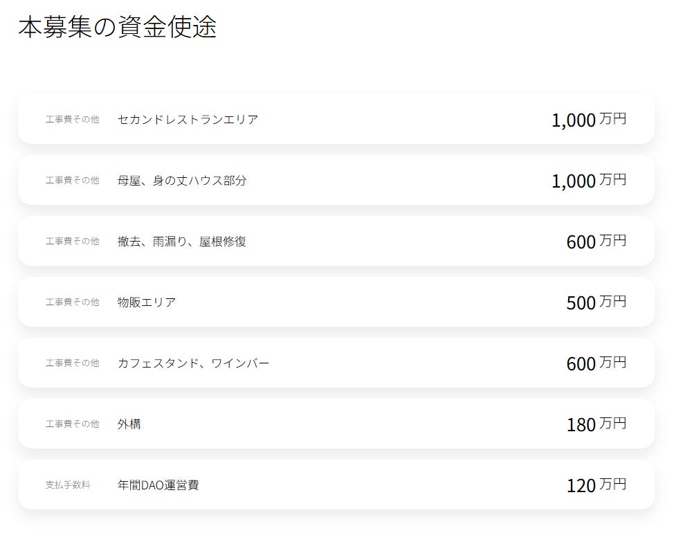 空き家のリノベーションとDAOによる共助型運営を通じて、多くの方が主体的にまちづくりに参加する本プロジェクトでは、直近での資金調達2,000万円を経て、その後計4,000万円の資金調達を目指しています。