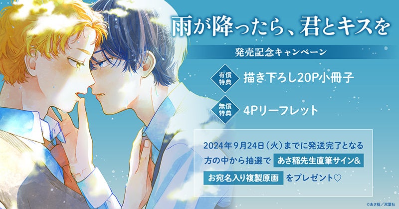 ホーリンラブブックスでは、あさ稲先生最新コミックス『雨が降ったら、君とキスを』 発売を記念して豪華キャンペーンを実施いたします!