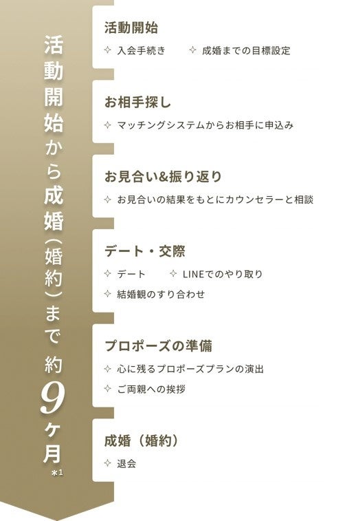 事業内容:結婚相談所プラットフォーム事業、直営結婚相談所事業、イベント事業、婚活アプリ事業、ライフデザイン事業