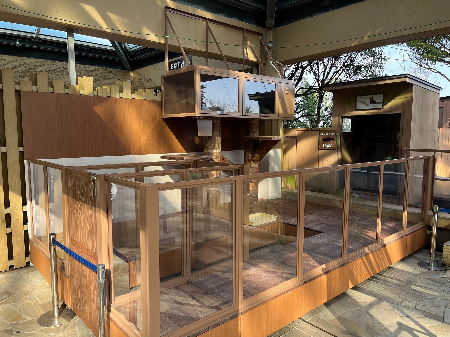 今回新たに拡張したエリアでは、渡り木や寝台などを設置したことによって、レッサーパンダが行動できる範囲がさらに広がり、レッサーパンダが木を垂直に登り降りする行動や、木の上での休息、採食をする行動などを引き出し、息づかいなどを間近に感じながら、レッサーパンダがもつ本来の運動能力をより間近でご覧いただけます。