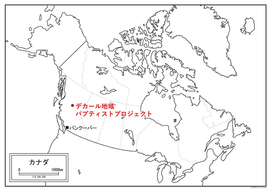 バプティスト鉱床のあるデカール地域は、カナダ・ブリティッシュコロンビア州中央部に所在し、バンクーバーの北方約1,000kmに位置する。鉱区面積は245km2である。バプティスト鉱床は、大規模低品位のニッケル鉱床であり、2023年9月のPre Feasibility Studyにおいて、年産ニッケル量5.9万トンで29年間の生産が可能との結果が得られている。FPX社は、アワルワ鉱精鉱からの電池材料向け化学品の製造可能性をパイロットプラントで試験し、可能であるとの結果を得ている。