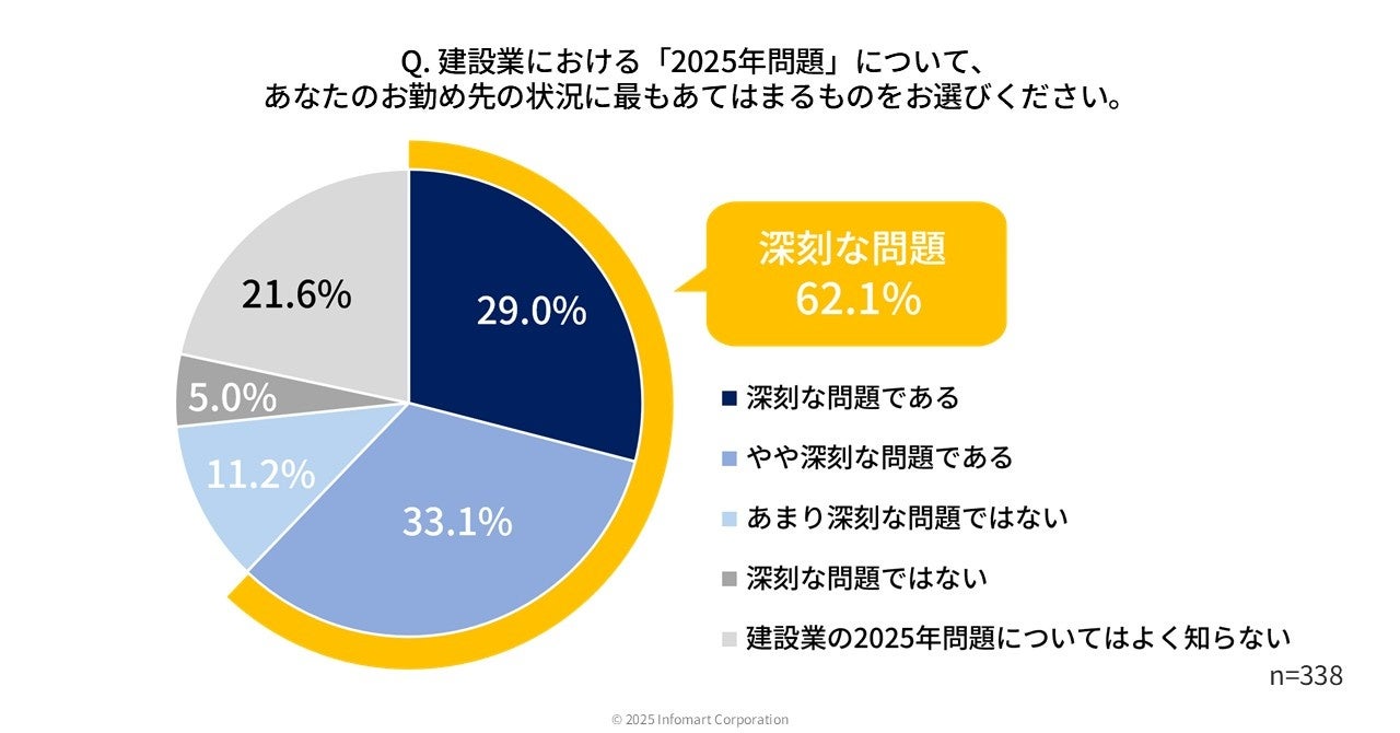 建設業の2025年問題、6割以上が「深刻な問題」と回答一方、4割以上が2025年問題に「取り組めていない」