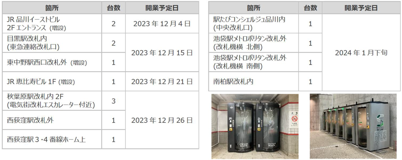 ○STATION WORKは社会課題となっている生産性向上のサポート等を目的として、2019年8月から個室ブース「STATION BOOTH」の展開を中心に、全国にネットワークを拡充しています。このたび、秋葉原駅や西荻窪駅等の首都圏エリアでSTATION BOOTHを増設します。 ○また、個室ブース型シェアオフィス「RemoteworkBOX」との連携を開始します。これにより、STATION WORK会員は、2023年12月26日より全国101カ所のRemoteworkBOX拠点をご利用いただけます。 ○STATION WORKは2023年12月26日に1,000カ所を突破します。今後も拠点拡大進め、2027年度1,400カ所を目指します。また、働き方改革をサポートする様々な利用シーンを提案していきます。 |