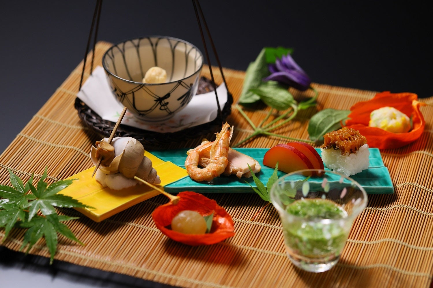 前菜には、もろこし真丈や鱧寿司、蓮の実の白和えなど9品をご用意。
