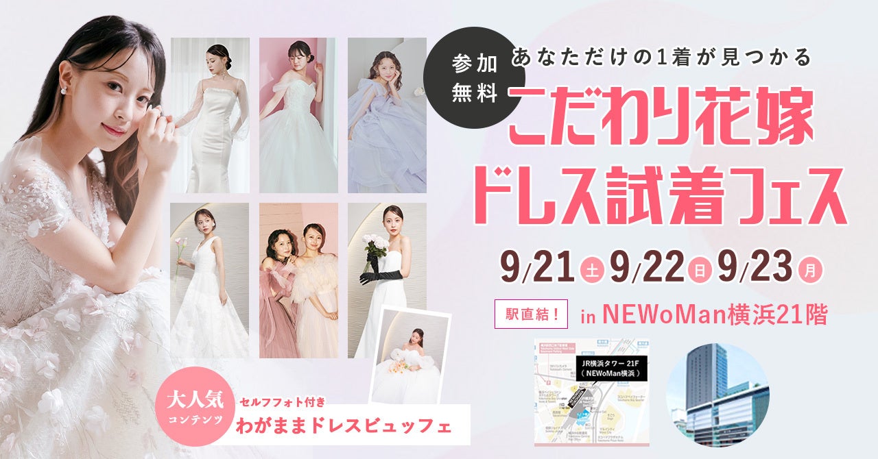 【9/21(土)~23(祝月)】あなただけの1着が見つかる『こだわり花嫁ドレス試着フェス』横浜駅直結ビルにて開催決定!