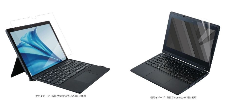 NEC製 Chromebook Y3とVersaPro VS<VS-D>専用「反射防止の抗菌フィルム」「高透明のガラスフィルム」2種類の画面保護フィルムを新発売