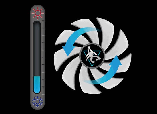 独自設計のブレードで冷却性能を高めたファンを2基搭載した高冷却空冷システムを採用。