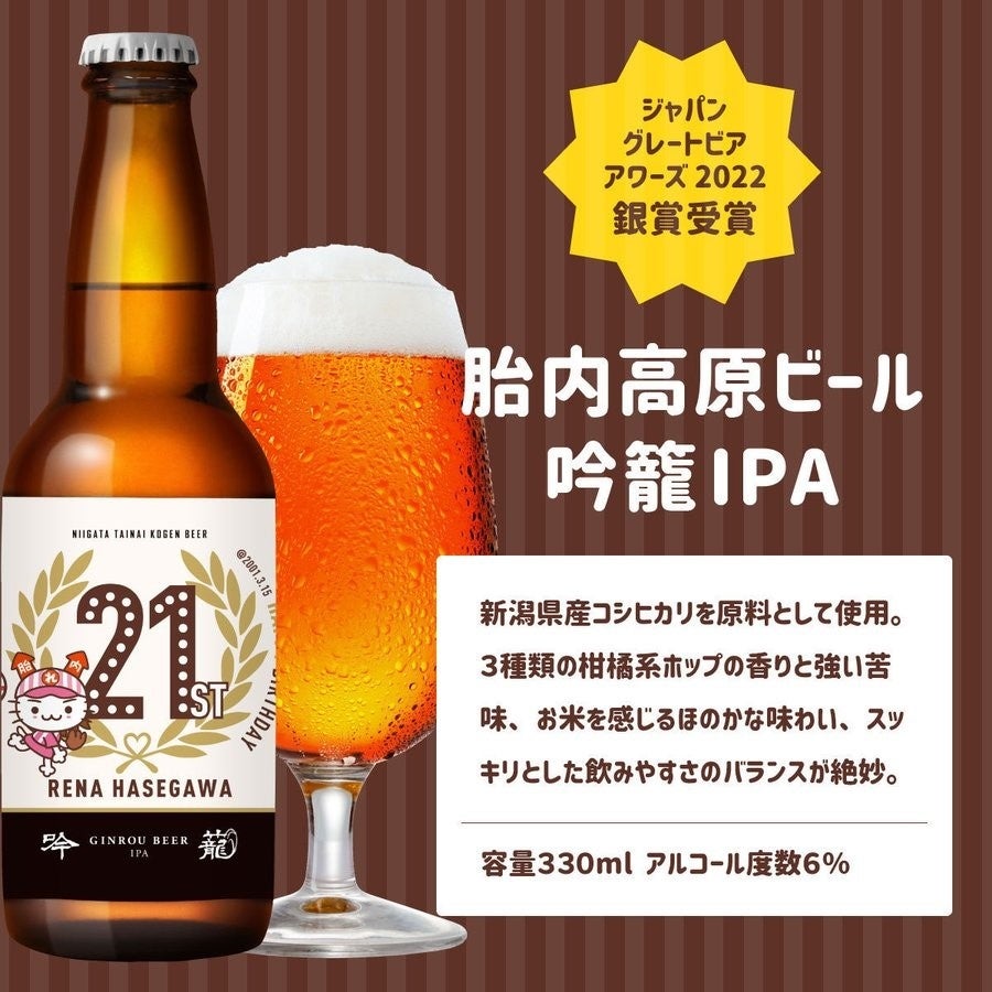 NSGグループの新潟ビール醸造株式会社(本社:新潟市中央区、代表取締役:大羽賀裕輔)は、胎内市観光PR大使を務める声優・長谷川玲奈氏が3月15日に21歳の誕生日を迎えたことを記念して、長谷川玲奈[オリジナルラベル]ビール(吟籠IPA / 吟籠WHITE)を各種限定400本の数量限定で発売いたしました。長谷川氏の地元・胎内市の「道の駅 胎内」や弊社Yahoo!ストアにて取り扱っております。
