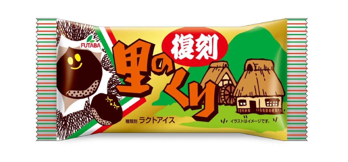 「里のくり」は1982年にフタバ食品から発売された、当時では珍しい栗を使ったアイスです。ほかにも「里もなか」「里あずき」「里のいちご」 などを”ふる里”シリーズとして展開されて、人気を博しました。